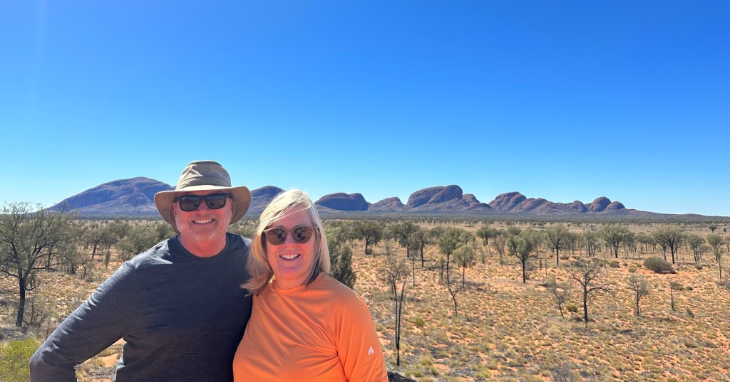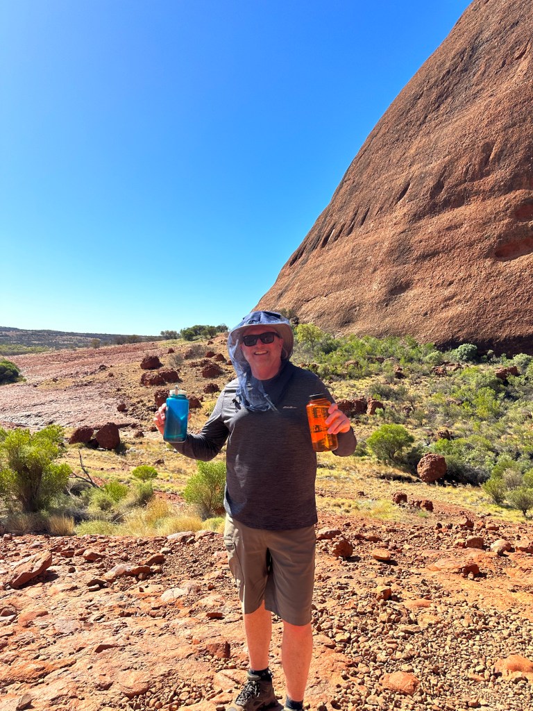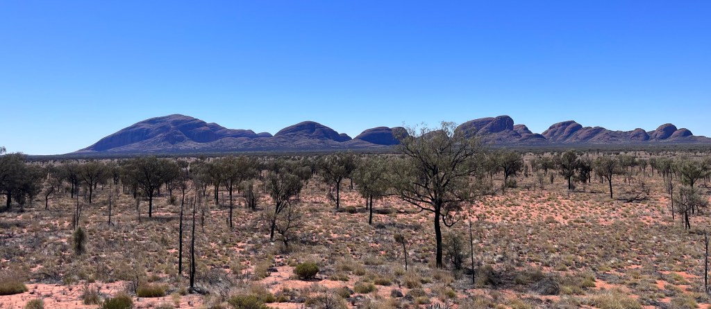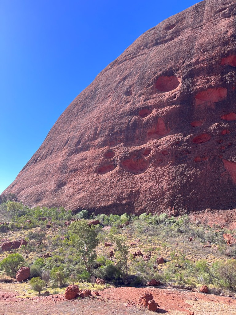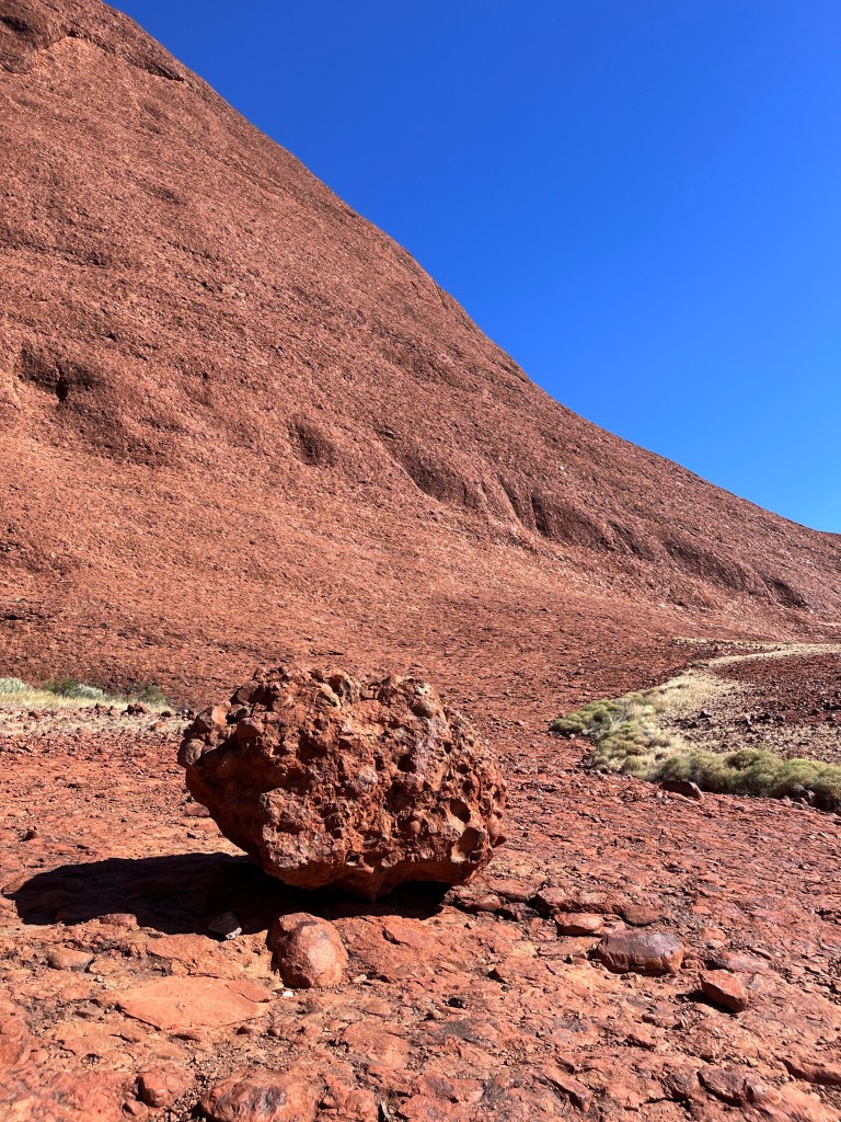 Kata Tjuṯa is massive. Like Uluru it is the product of seismic tectonic shifts as the continents shifted and moved over hundreds of millions of years. The conglomerate rock that makes up the domes is of harder stuff than the sandstone at Uluru. In terms of scale, Kata Tjuṯa has a circumference of 44km, over four times that of Uluru, and it’s highest point is 550 meters, significantly higher than Uluru. The two landmarks are separated by 75km, a distance that appears much shorter in the flat semi arid desert that is the Outback.