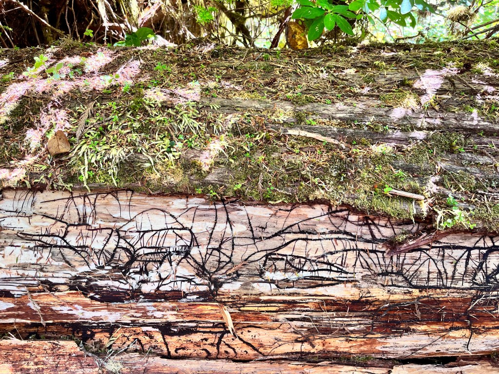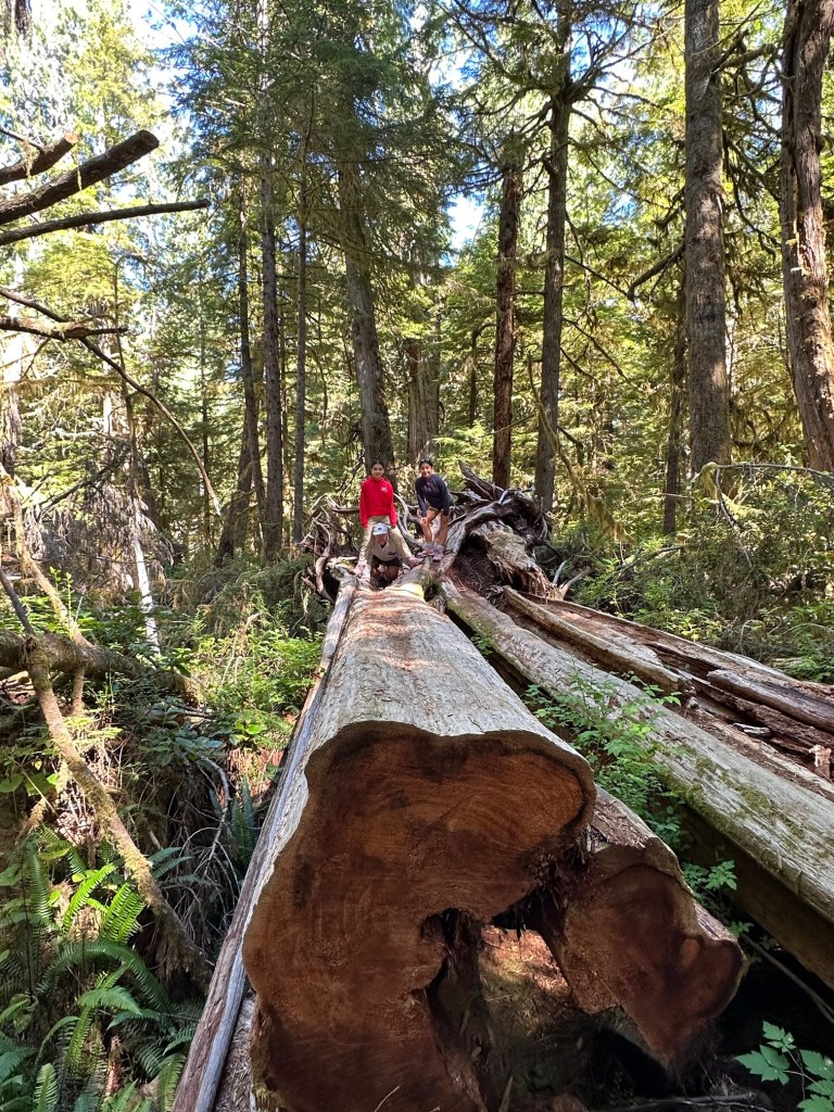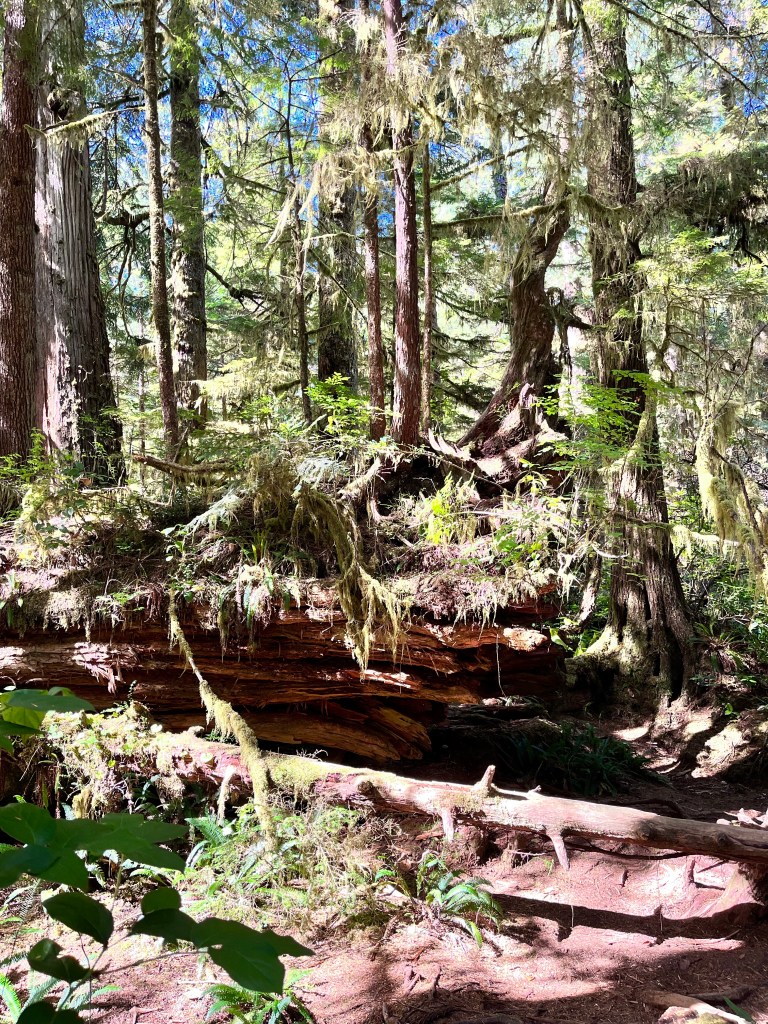 We certainly had lots of opportunity to do both. The Rainforest Trails offer the opportunity to really feel immersed in old growth forest: ancient cedars and hemlocks upwards of 800 years old towered above us. Apparently upwards of 70% of these giant hemlock took root atop fallen hemlock. The biomass here feels so different from bush trails in Ontario: there is a spring and give to the ground that you feel with each footfall in these woods.