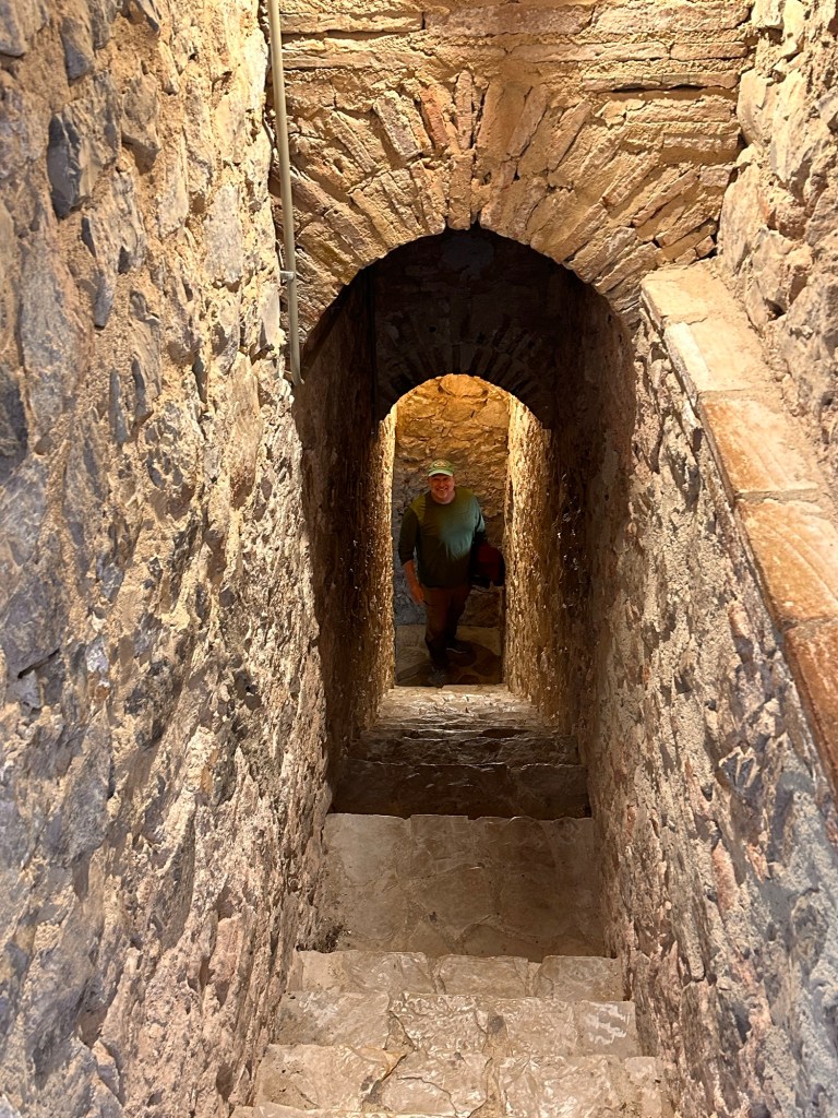 Behind them is a high rocky cliff, and on top of that the remains of the Christian castle’s keep, built on the foundations of the former Moorish Castle in the late 1400s.