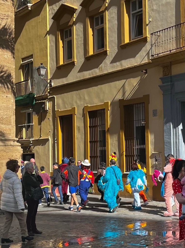 Well this was an unexpected bonus! The Cadiz Carnival is a legendary event, and is the largest in mainland Spain. It runs for 10 days, starting the weekend before Ash Wednesday, and is famous for its singing groups and their humorous and satiric songs and costumes. We arrived a full week after the end of Carnival, but discovered that there is a bonus carnival day in Cadiz known as Carnaval Chiquito! This event started in the 1980s as an unauthorized and underground affair, a protest against the strict rules of the church and their carnival timelines. While it still has the vibe of being more spontaneous many of the same singing groups come back for this event.