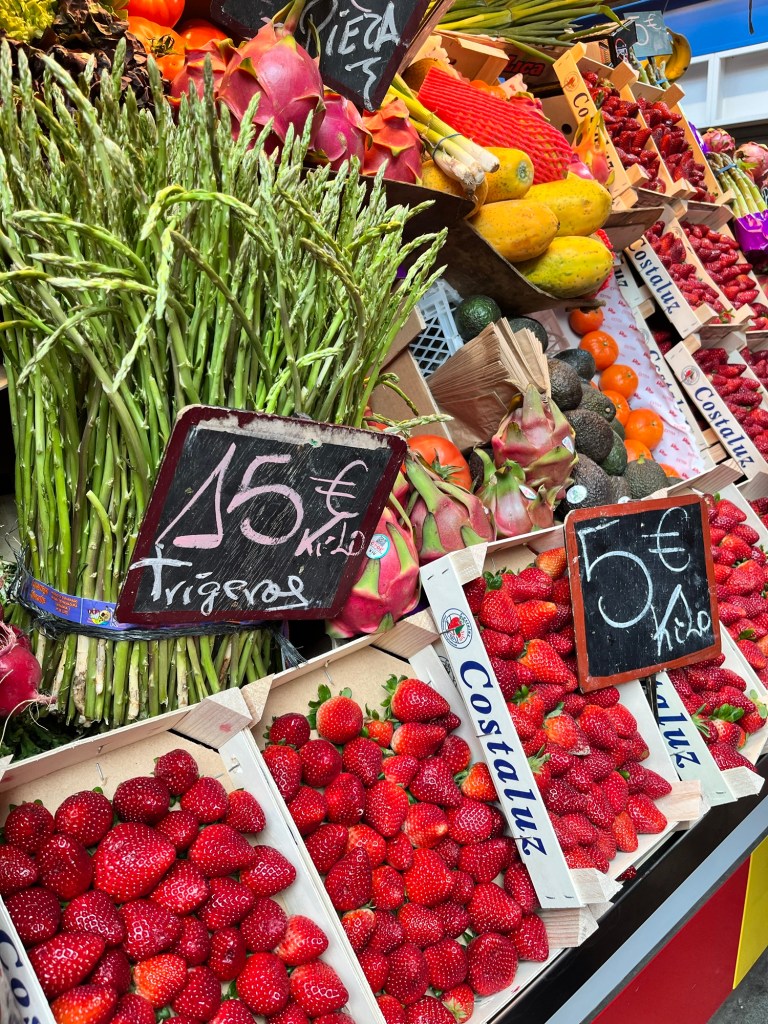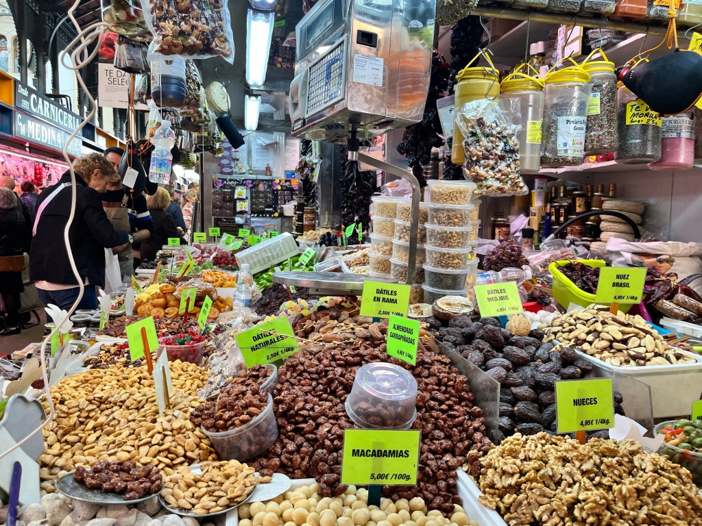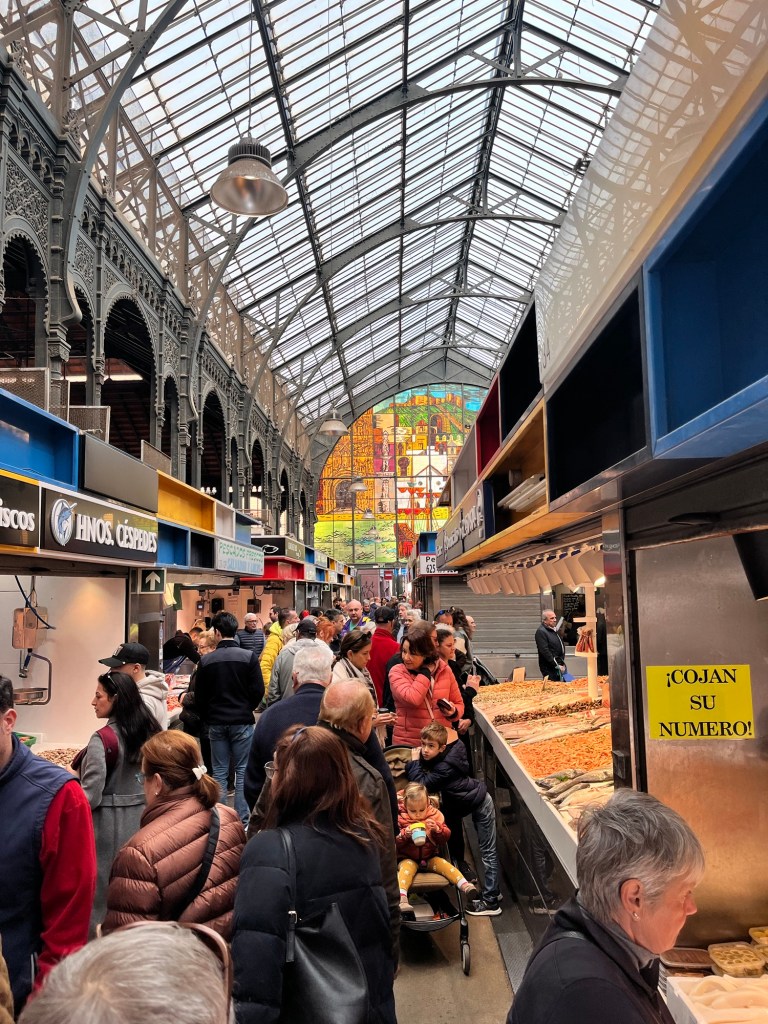 Inside are the typical vendors: fish, meat, fruit and vegetables. There are also a large number of food stands cooking up seafood dishes and other treats. You can take a table adjacent and be served breakfast or lunch. We bought some produce to make dinner in the apartment, which was steps away.