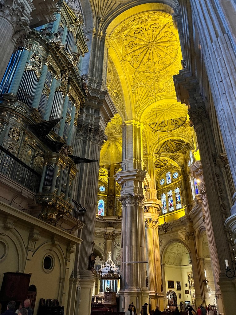 Malaga Cathedral is known affectionately as La Manquita, or “the one armed lady”, as it boasts only one complete bell tower. It is a commanding Renaissance and Baroque building with a beautiful choir, impressive organs and soaring ceilings and arches bathed in a golden glow.