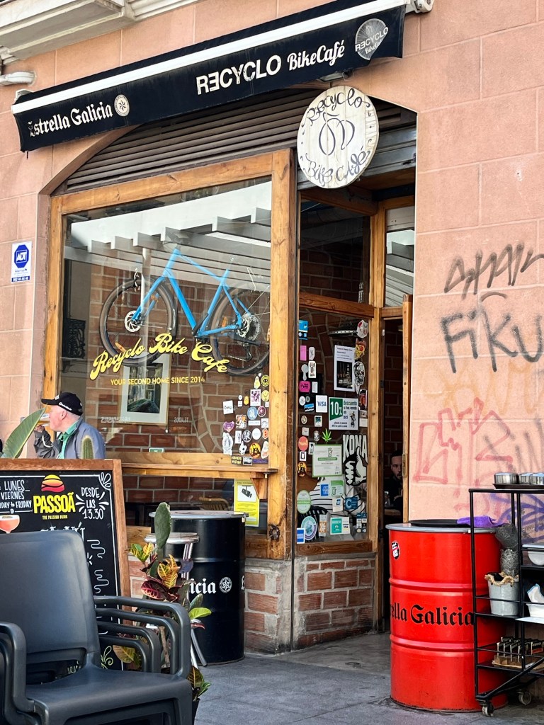 We returned to the area around the market for lunch at the Recyclo Cafe, a bike repair shop and restaurant that had terrific salads and vegetarian food options. Our views from the Recyclo patio looked back on the market’s famous stained glass front.