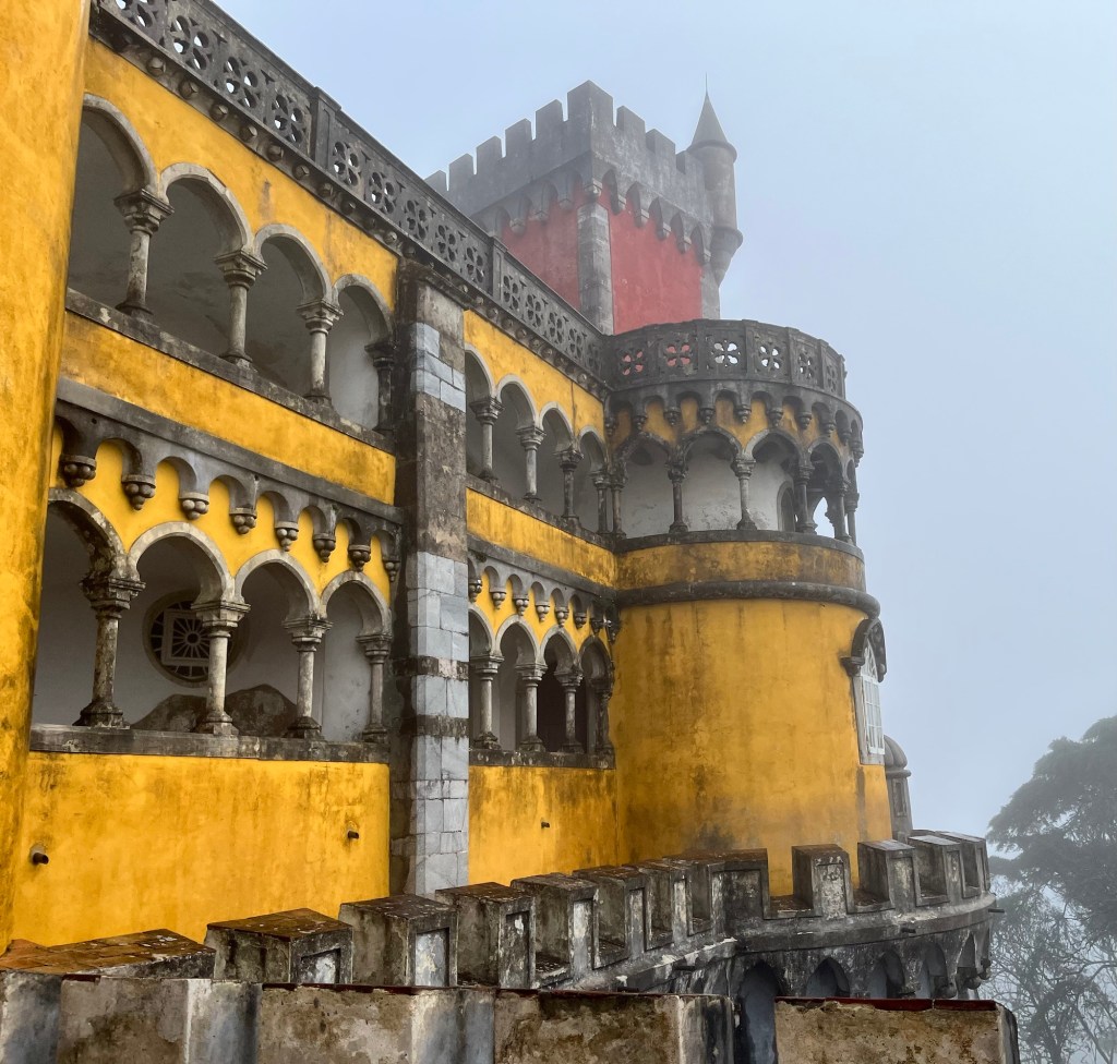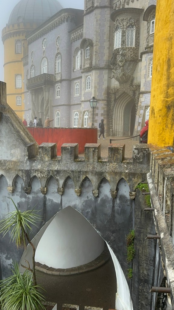 The Pena Palace is an architectural miss-mash of styles: Moorish arches and minarets, Gothic towers, Greek iconography in murals, Renaissance domes… it feels like a Disney fantasy rather than a real place.