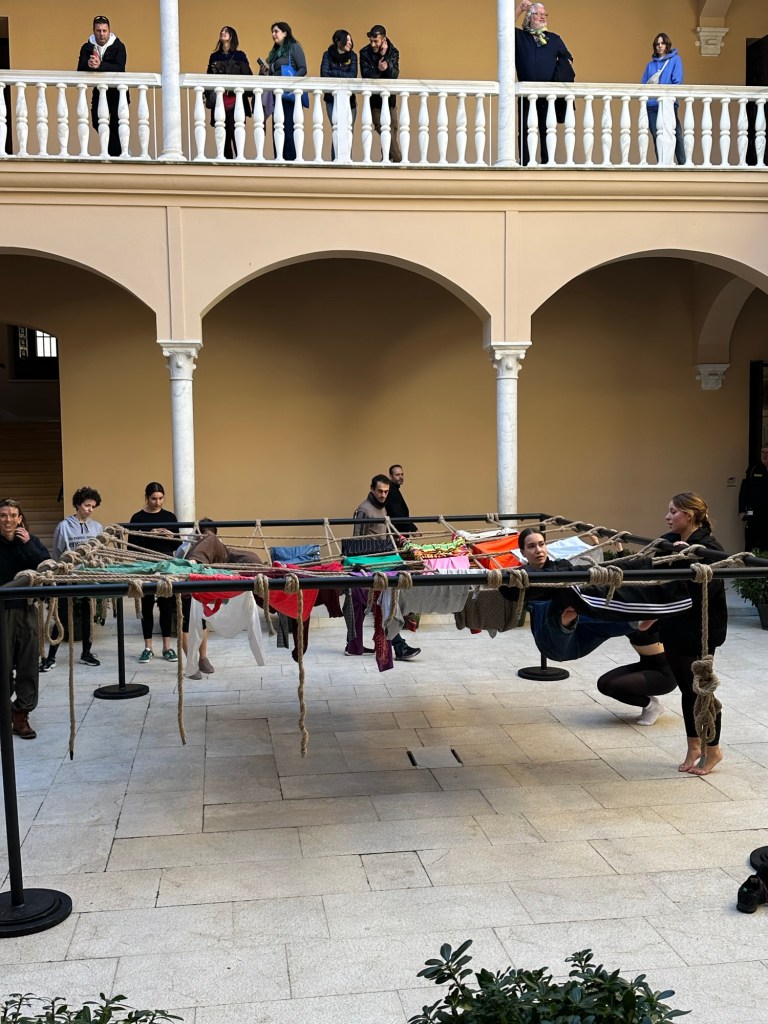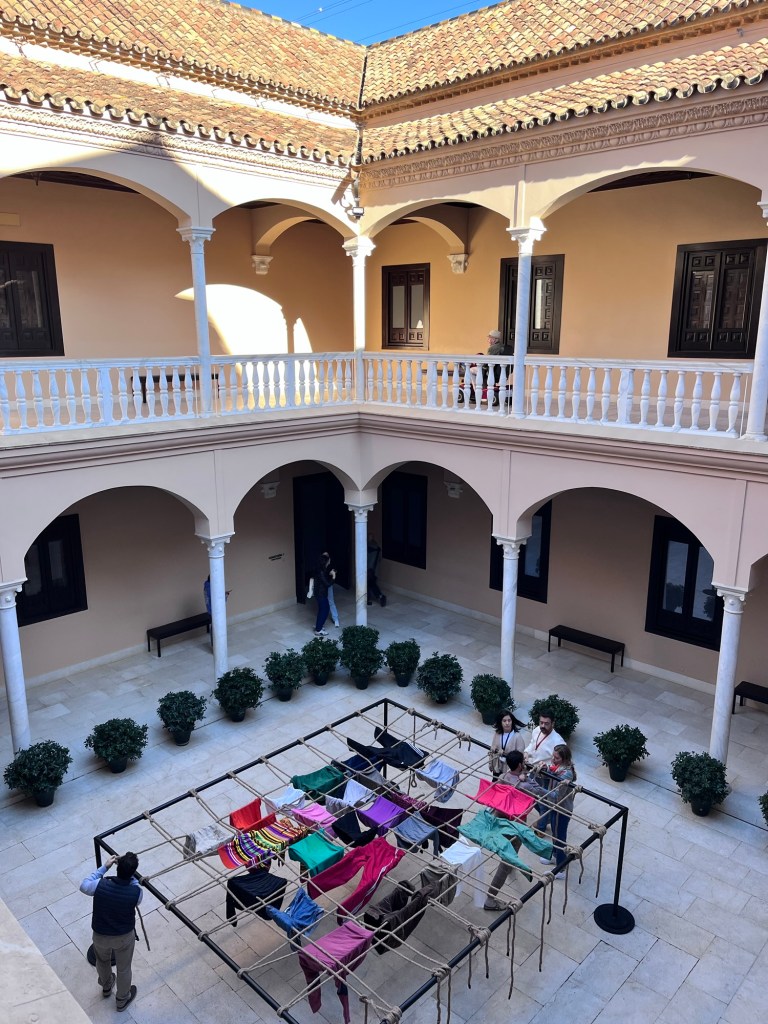 The museum frames a lovely courtyard in the Moorish style where group of students where engaged in a performance art piece that involved climbing onto a web of ropes to which clothes had been fixed, and then trying to climb into said clothes. It looked to be exhausting work.
