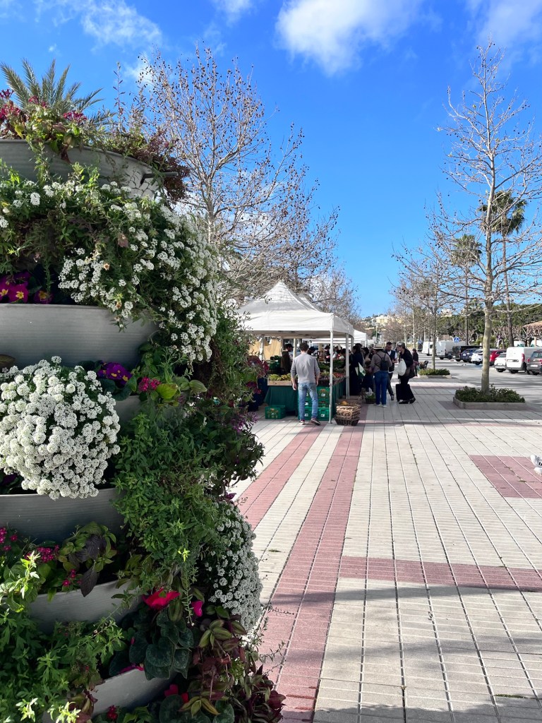 Our apartment was about 2km west of Mijas Cala, the seaside town not to be confused with Mijas Costa (the coastal area) or Mijas Pueblo (the hill town). In addition to a few supermarkets, Mijas Cala hosts weekly markets on Wednesdays and Saturdays and special “organic” markets twice a month on Sundays. We (particularly Robin!) enjoyed browsing for bargains and trinkets, and we picked up some delicious produce as well to supplement what we purchased in the stores.