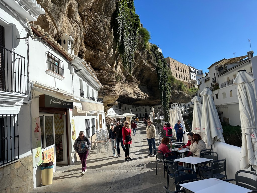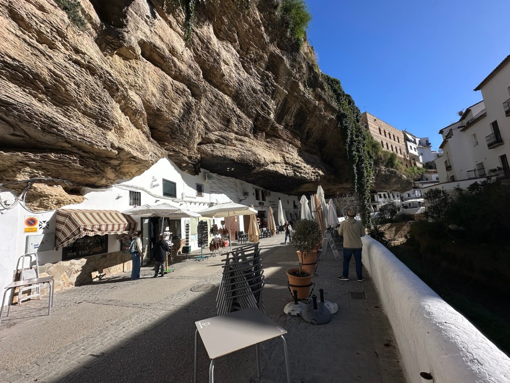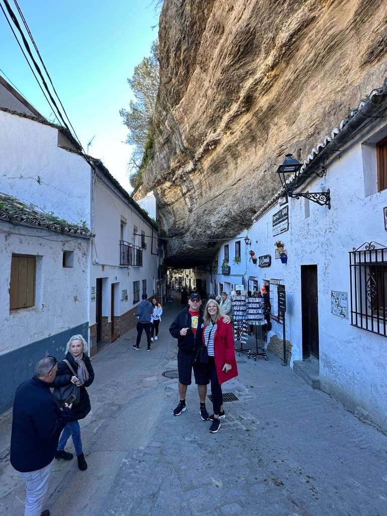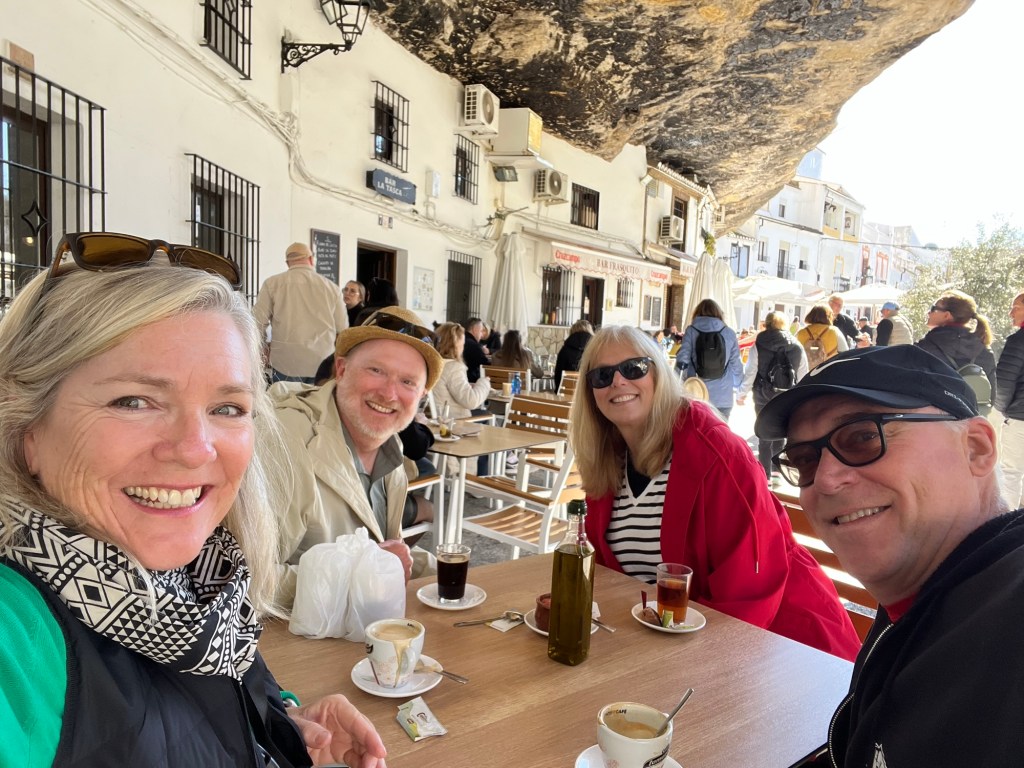 Our four weeks in Spain overlapped a little with our friends Mary Lynn and Garth’s stay here, so we decided to take a couple of days to do a little touring with them. Our first day saw us visit the white hill towns of Setinel de Bodegas and Ronda.