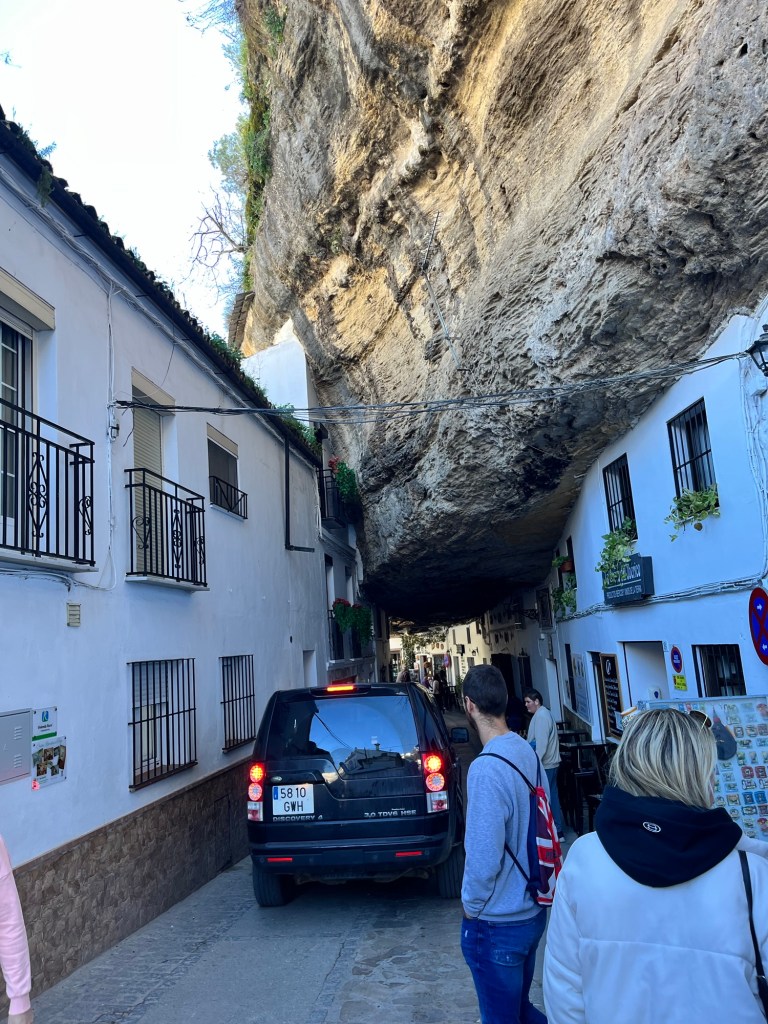 We decided to stop in Setinel first, which is a straight shot up from the Mijas coast for about an hour and a half through the Sierra de las Nieves. It is a slow and long climb, a little scary in the daylight but probably terrifying at night, and we all decided that we would be taking the decidedly less “vertical” route out to Malaga and back along the coast on our return later that evening.