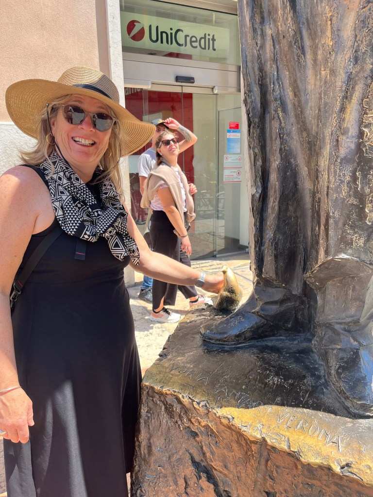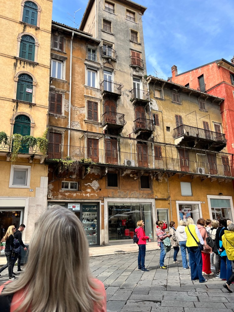 Back to Shakespeare. As you know Verona is the setting of Romeo and Juliet and the Veronese tourist industry has taken full advantage of this connection. By far the longest lines in town were to see Juliet’s “house” and “balcony”. While there is a historical connection here to the Capulet family, it’s a pretty tenuous one so we passed on the experience.