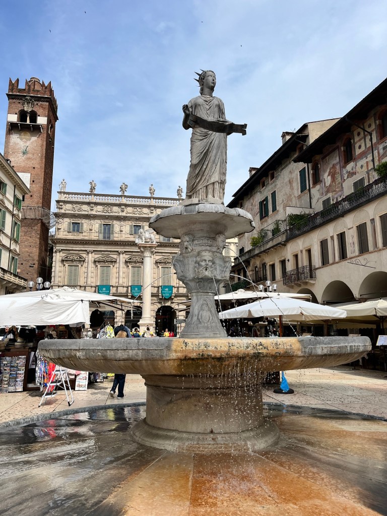 At the north west end of the piazza is a bronze statue of the Veronese poet Roberto Barbarani: locals rub the dove at the poet’s feet for good luck.