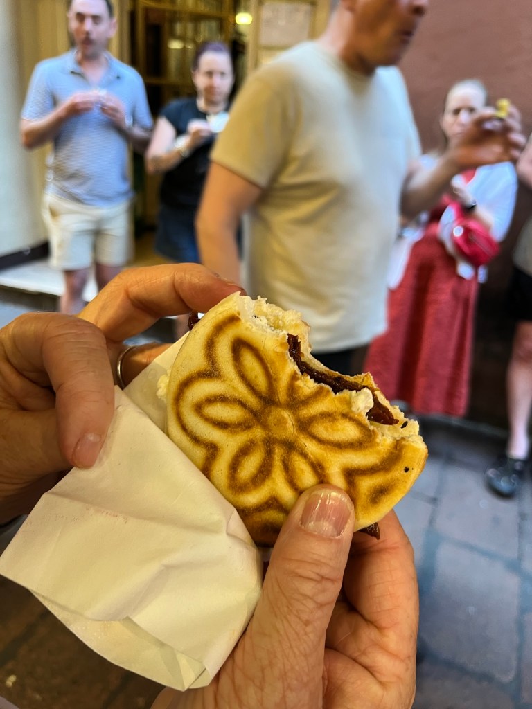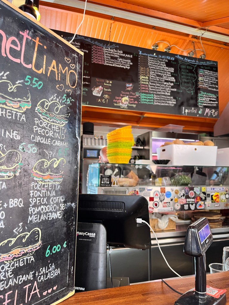 I Panini di Mirò is one of a series of street stalls in the piazza offering cheap and tasty food and drink. It has all the qualities I admire in a street food stop: fresh ingredients, quirky personality (you scribble your order out on pieces of notepaper), charismatic staff (lots of singing to music while cooking) and a great spot to sit and enjoy your food (checkmate in this case).