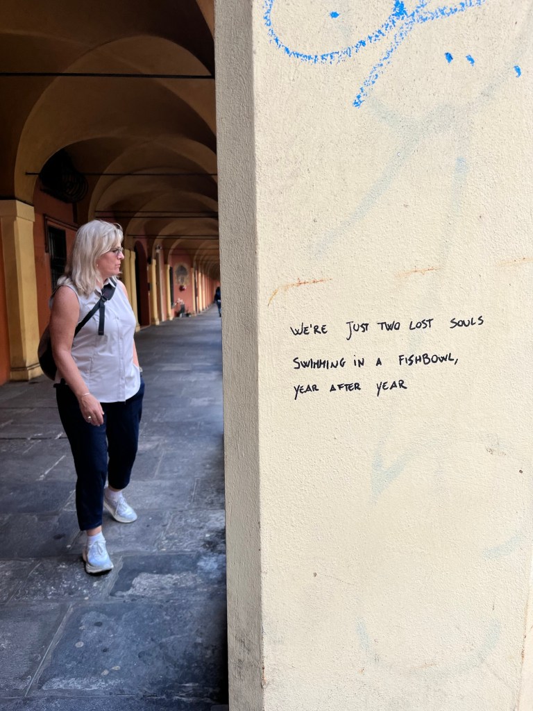 In English, “the learned, the fat, and the red”, this motto sums up this quirky and charming city, the capital of Emilia Romagna. It also fits as a motto for our reunion with our university friends in Tuscany, but that’s a tale for another day.