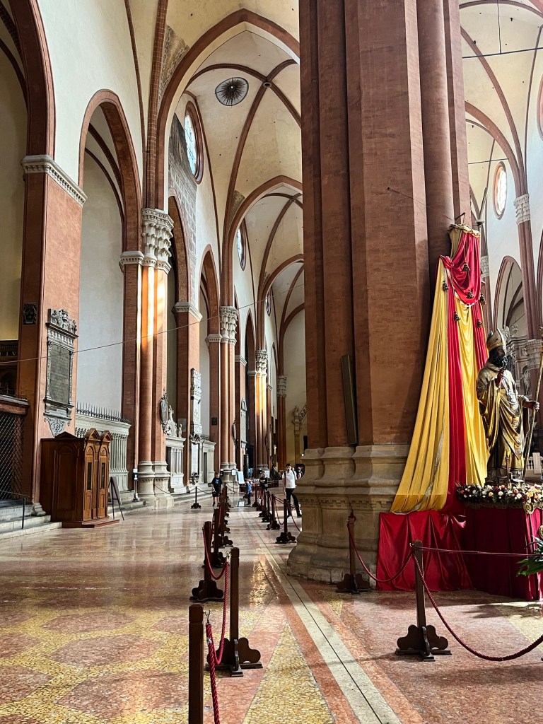 The Basilica of San Petronio in Piazza Maggiore is an incredibly impressive and massive structure. Although unfinished (check out the attempt below and covering the massive red brick exterior in marble) it still has an amazing presence, including the world’s largest interior meridian line or “sundial, a scientific detail that I’ve never seen in any other cathedral.