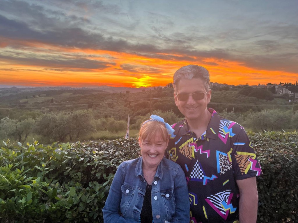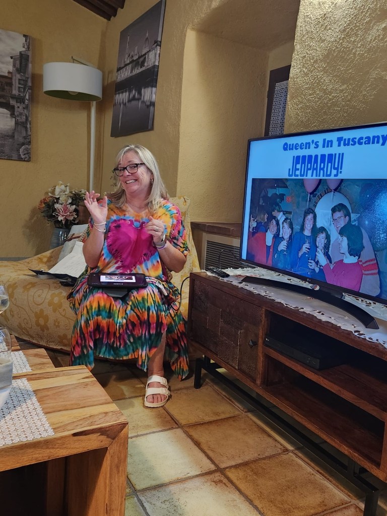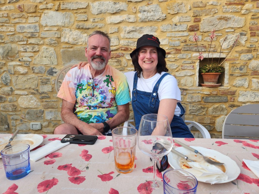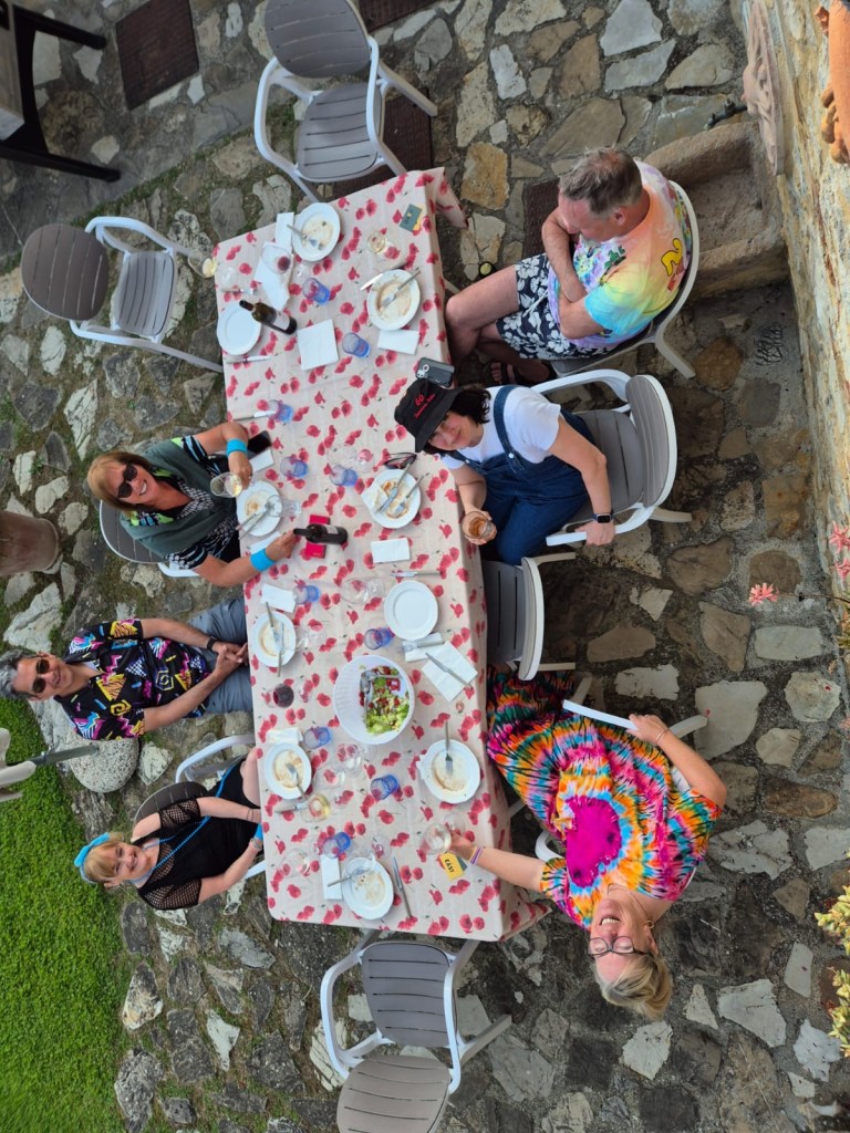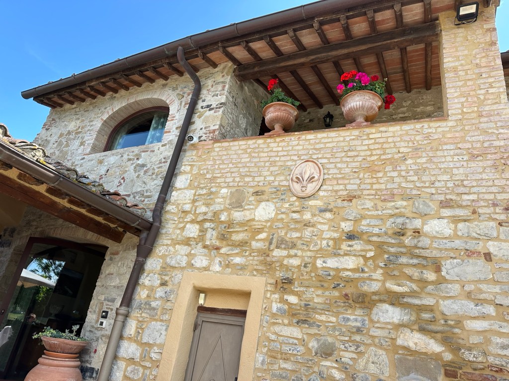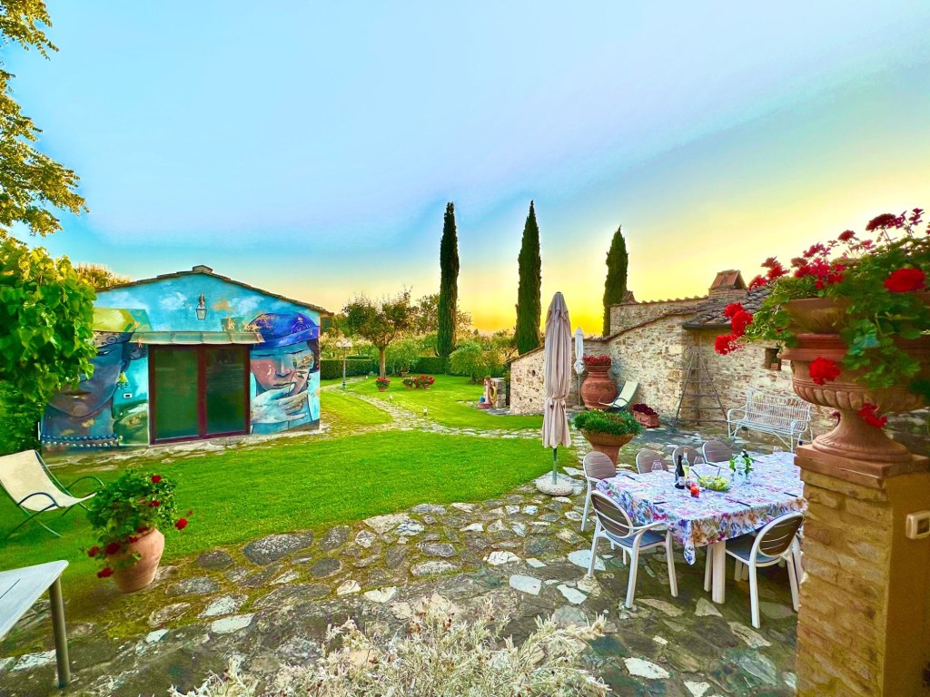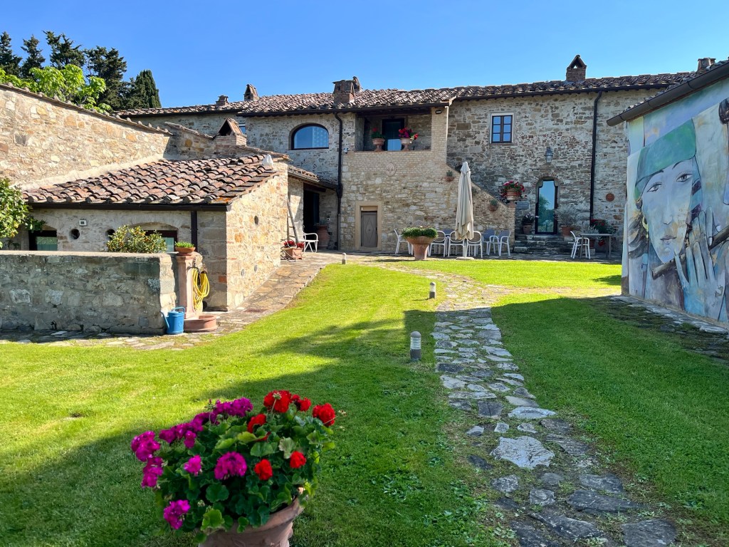 We started talking about a university friends reunion in Italy to celebrate over 40 years of friendship and the 60th birthdays for most of our group a few years back. Serious planning got underway last summer. The consensus was that we wanted to rent a villa in Tuscany for a week, and Sarah’s husband Ian took on the thankless task of looking for a spot that fit our criteria (whole place to ourselves, lots of indoor and outdoor space, great location, incredible view, private bathrooms for each bedroom, big kitchen, reasonable cost, etc…). He nailed it with Villa Sonia, located at the edge of the village of San Donato in the heart of Chianti wine country.