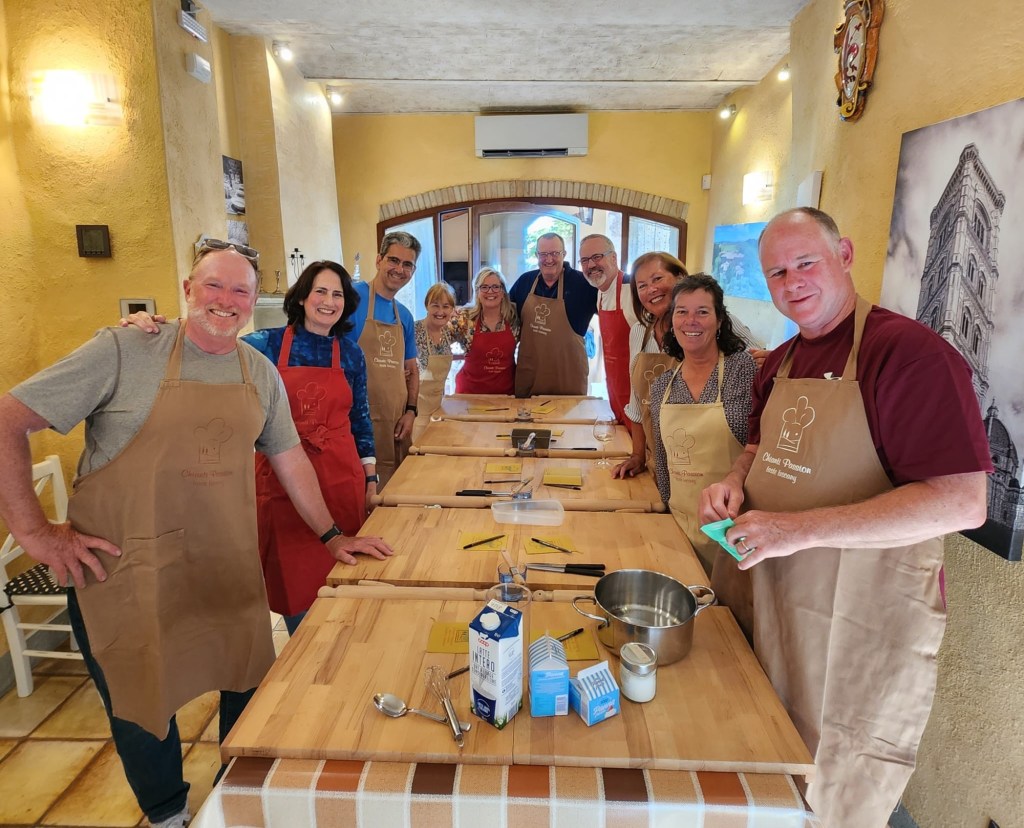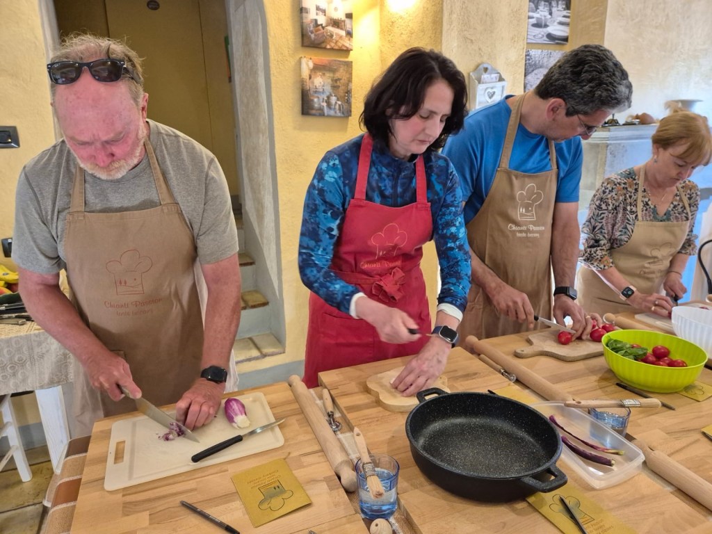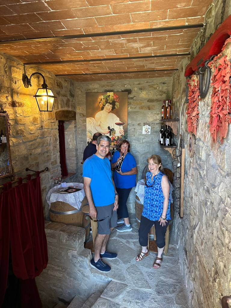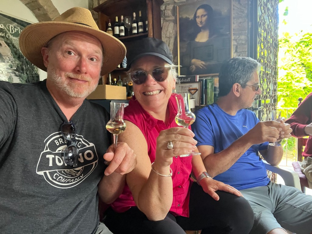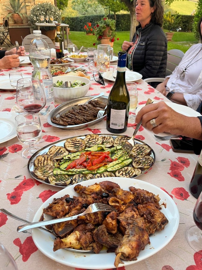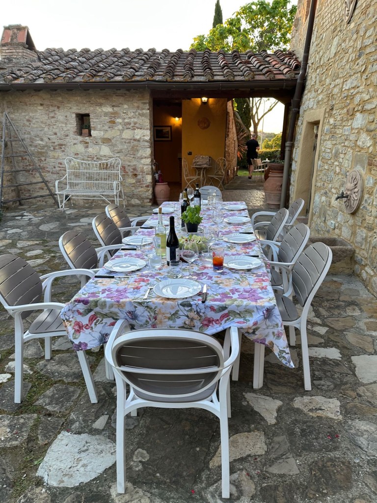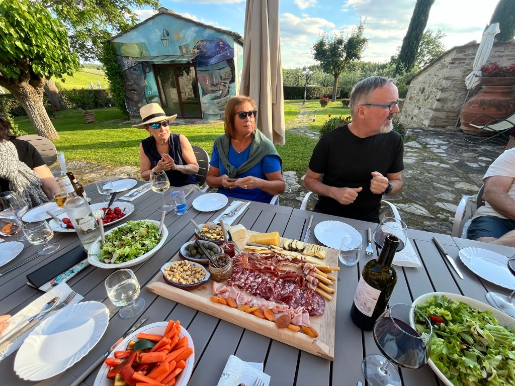 We made a concerted effort to support the Italian wine community during our stay at the villa (and the beer and spritz communities- we are an inclusive group). I’m sure all of us were a little embarrassed at the volume of glass recycling generated, and I’m sure that June will be a month of abstinence from all Chianti wine for most of us. However we spent many happy hours together learning more about this wine region and its famous products.