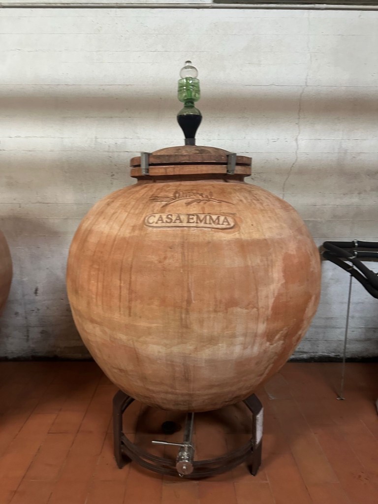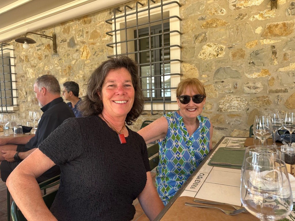 Villa Sonia is positioned across a small valley from Casa Emma, a local winery and olive producing property with a lovely dining area overlooking the vineyards and a view back to our villa. We spent a nice afternoon there enjoying their products as well as a nice three course lunch. It was great to be able to unlatch a gate near our villa and walk through the vineyards up to the winery.