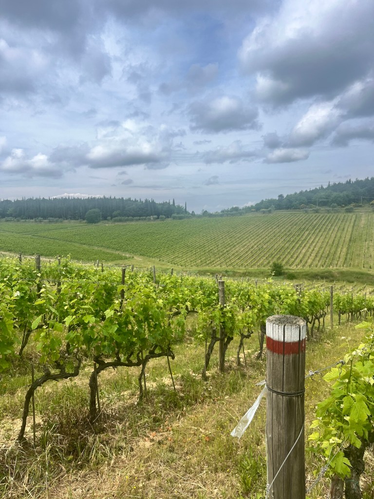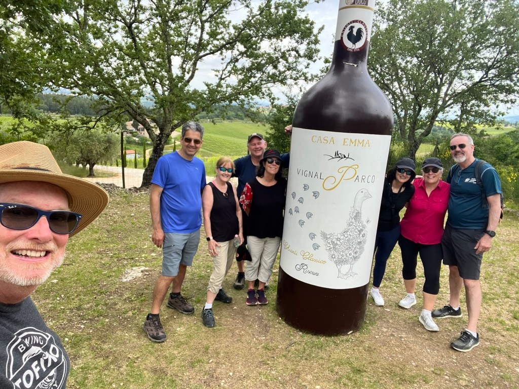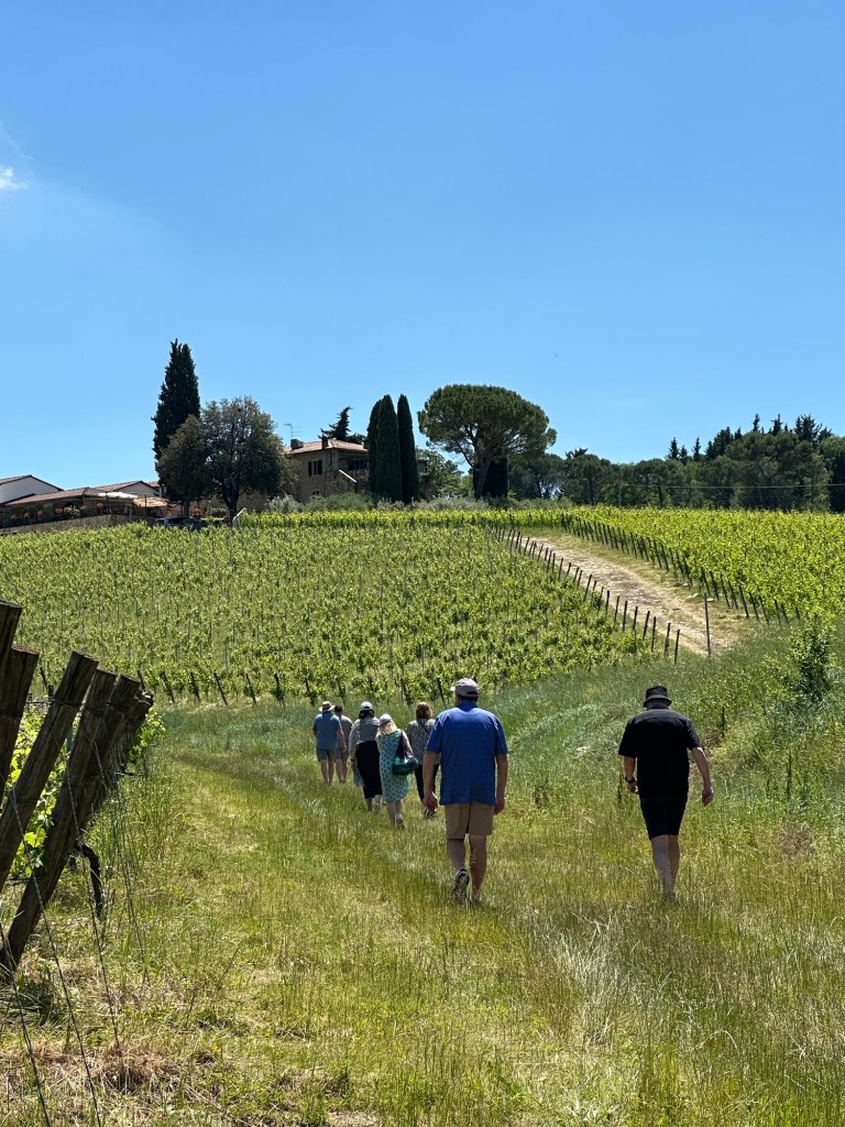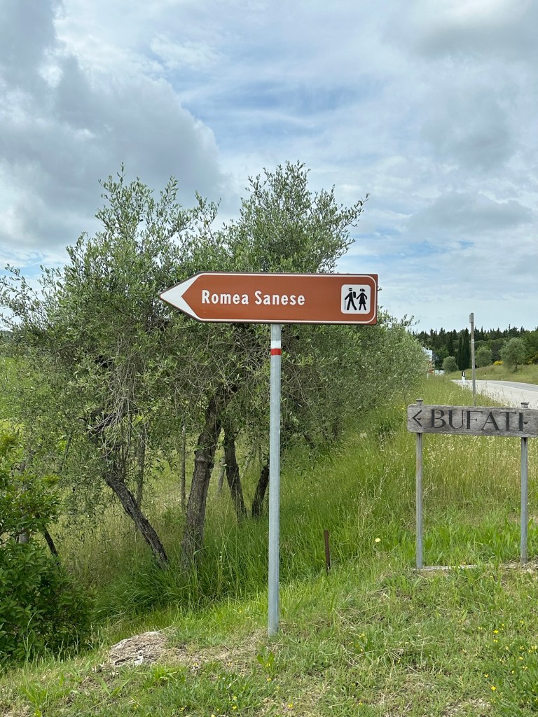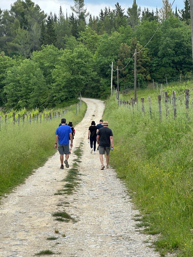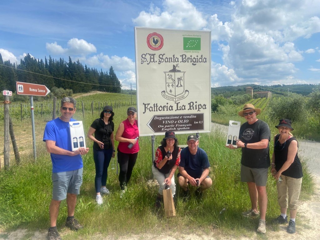My most memorable wine experience of the week actually started with the intention of simply going on a hike. I had noticed that part of the ancient Romea Sanese trail from Florence to Siena passed just below the villa. We had heard quite a bit about this trail at various stops as it was part of the longer Via Francigena, the famous pilgrims route to Rome.