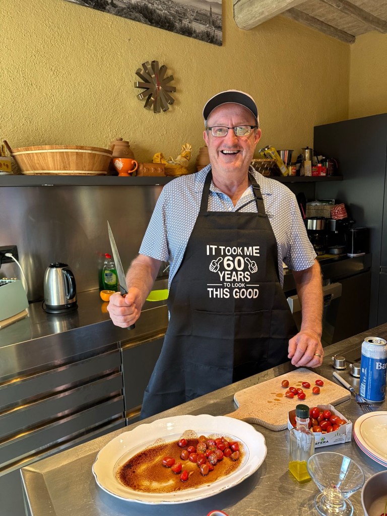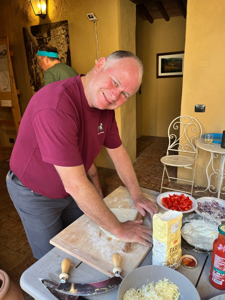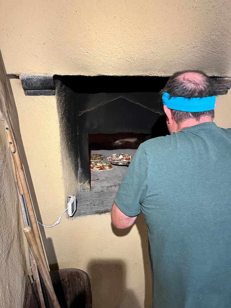 All of us enjoy cooking, but Graham takes it to another level. On numerous occasions he has prepared meals for upwards of 60-100 people at a time. So we were grateful that he enthusiastically took the lead, particularly on two meals: our pizza night and our Bistecca alla fiorentina evening.