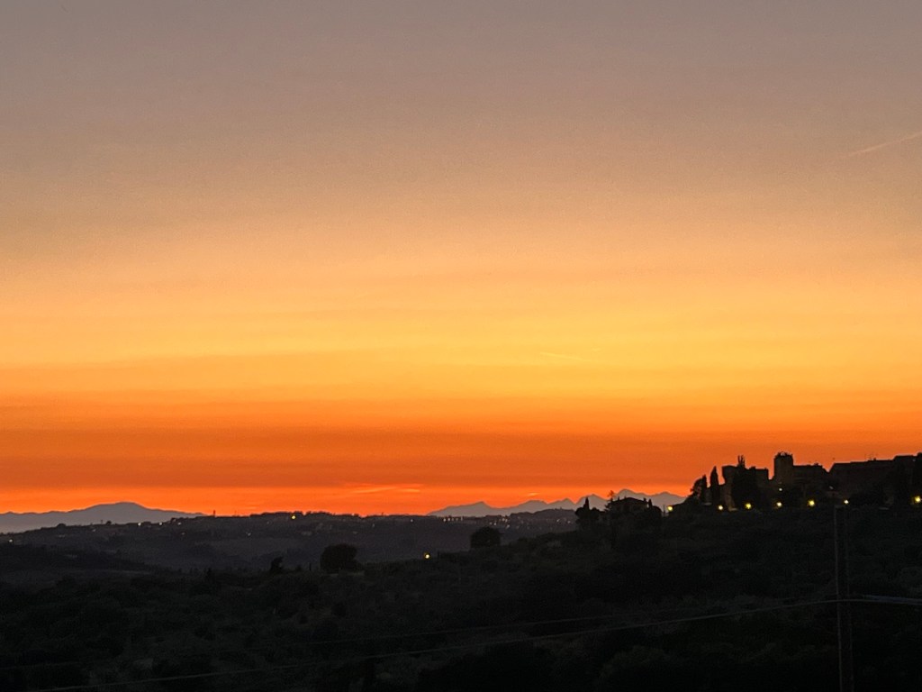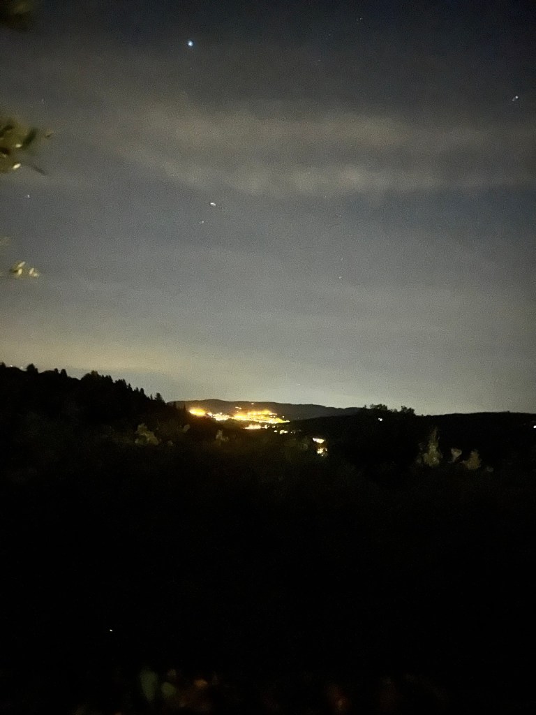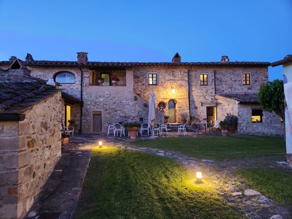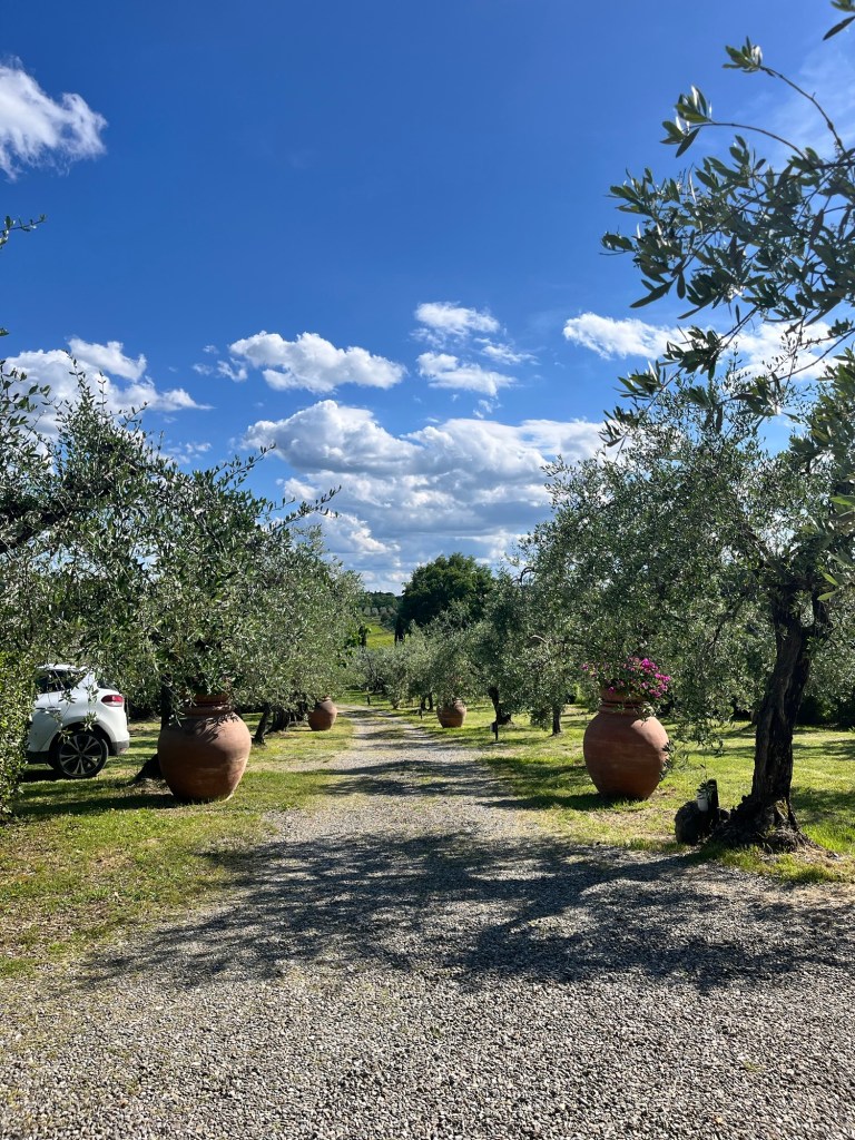 The pool was a real draw in the afternoon, and in the evening, as we looked down the olive tree groves illuminated by fireflies into the valley below, where the village of Panzano rose on the other side.