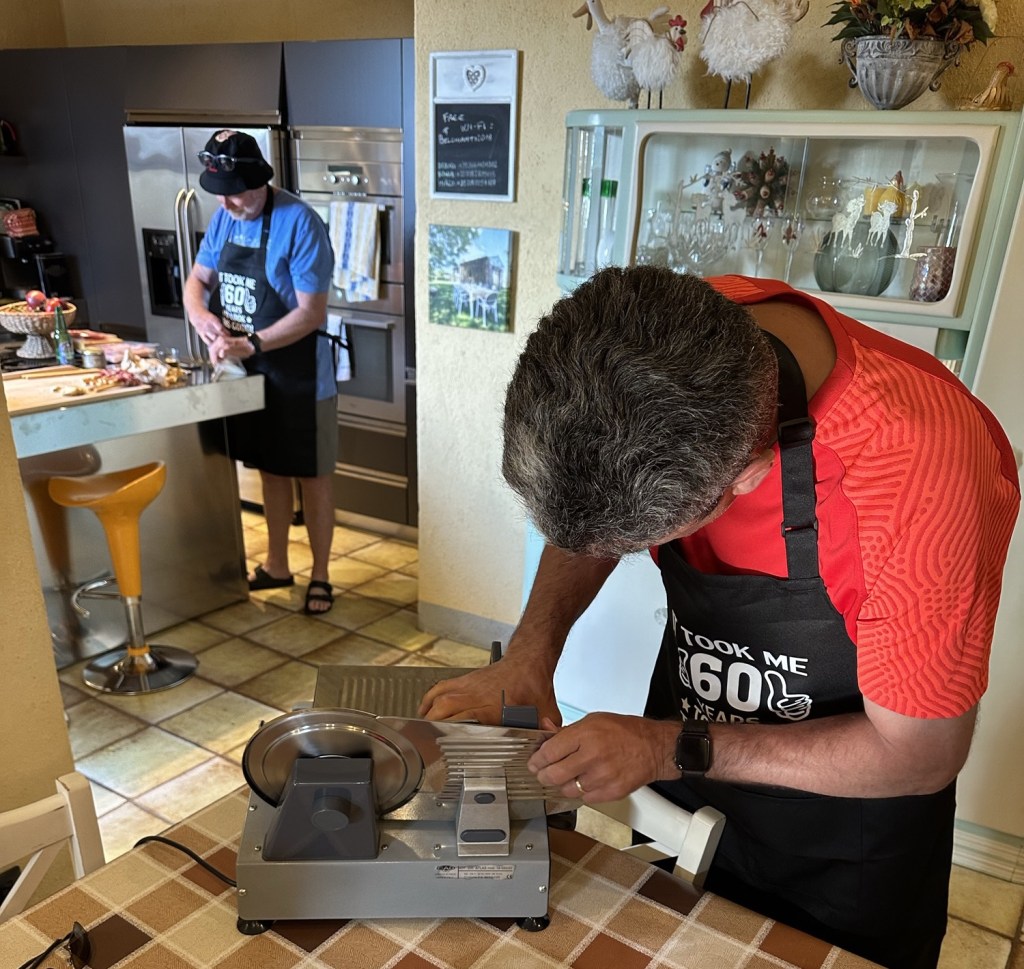 Pete, who has a particular reverence for cured meat as befits a Canadian of Italian heritage, was particularly taken with the commercial sized meat slicer, and ventured to the Coop in San Donato to purchase a slab of prosciutto the size of a placemat, which seemed a little ambitious for one week’s worth of consumption. He would plug in the meat slicer and slice off a mound of prosciutto to supplement breakfast, make a sandwich for lunch or contribute to any tray of antipasto that was being assembled prior to dinner.