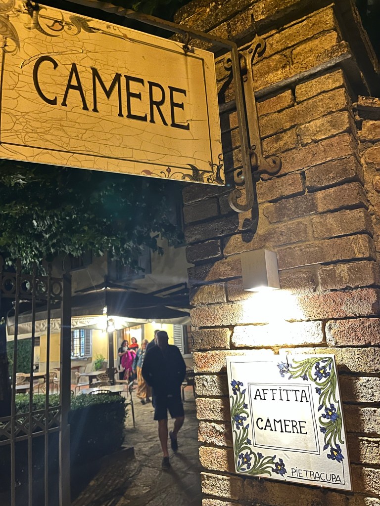 Somehow, we also fit in a very nice meal at Camere, a restaurant about 100 metres from our gate, with the same lovely views of Panzano that we had from our pool.